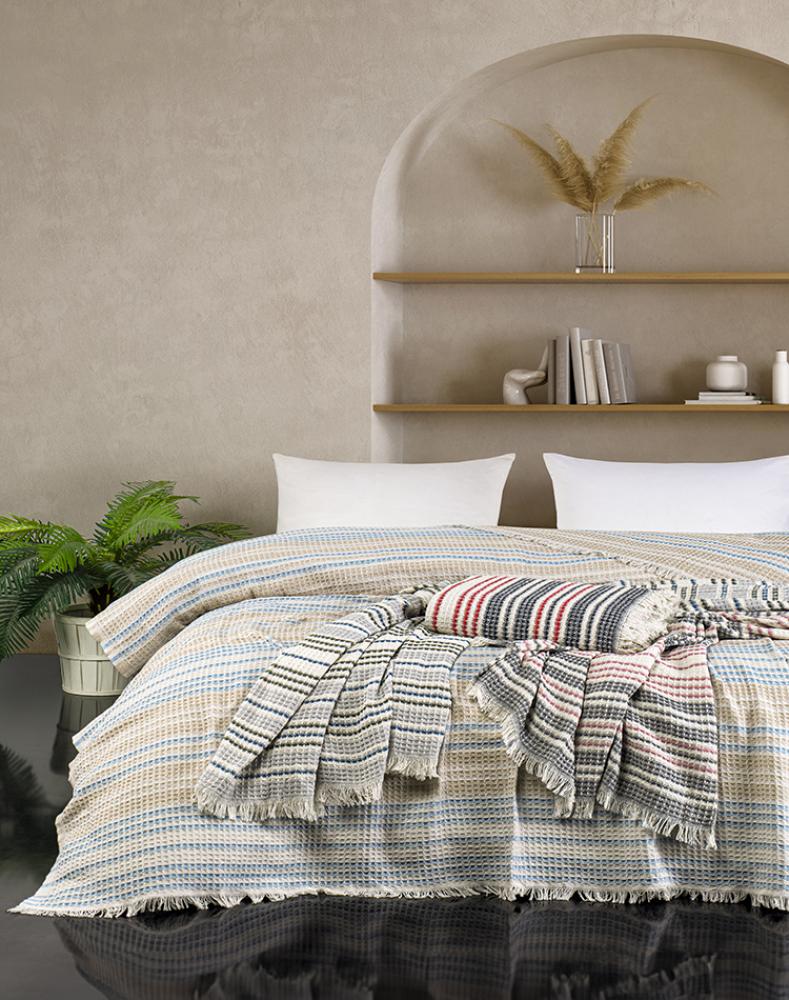 🛏️ غطاء سرير تركي صيفي مزدوج سماوي بيج – تجديد أناقة غرفتك