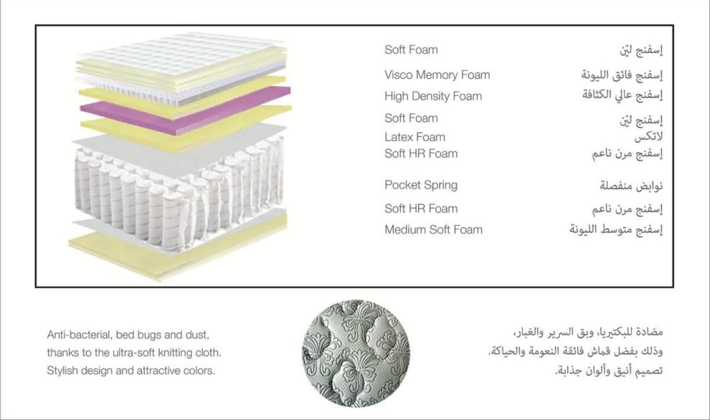 أما الطبقة الرابعة فهي من الإسفنج اللين، لتوفير توازن مثالي بين الدعم والراحة.