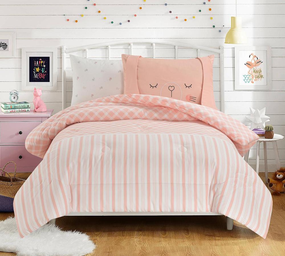 • التصميم: يتميز برسومات لطيفة ووسادة على شكل قطة بأذنين وذيل، مما يضفي لمسة مرحة وجذابة.