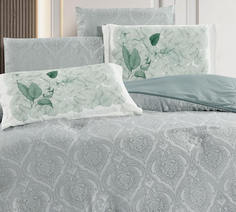 مفرش صيفي ناهد مزدوج اخضر فيروزي 6 قطع فاخرة