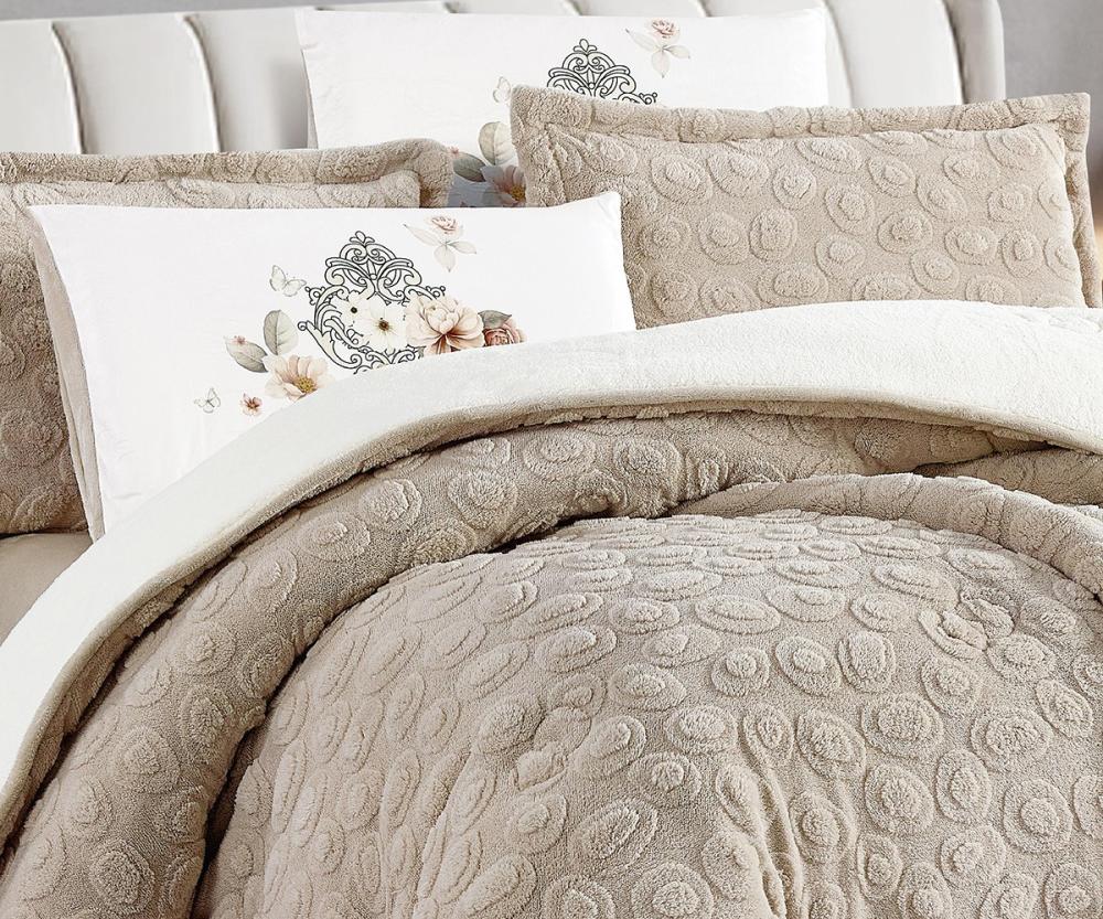 مفرش عذبة مصنوع بالكامل من فرو من الداخل والخارج، يعطي إحساس مريح بدون ثقل، كأنك تغطّي نفسك بالدفا نفسه.