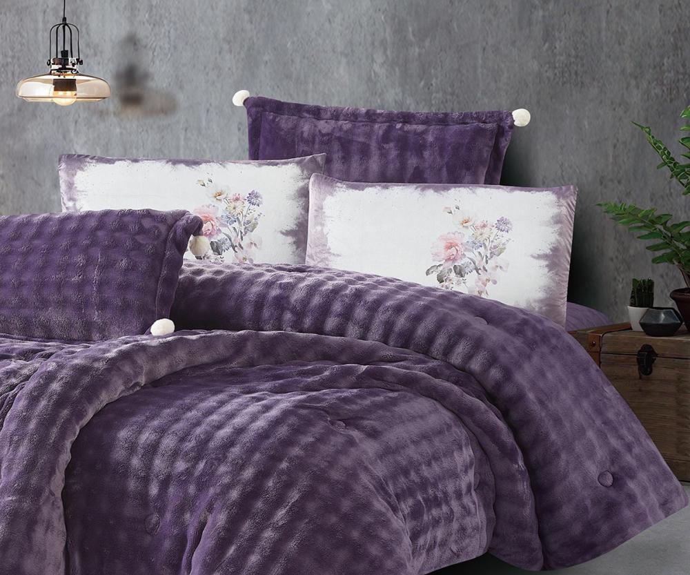 مفرش سرير تيكوما شتوي مخمل مزدوج 6 قطع - بنفسجي